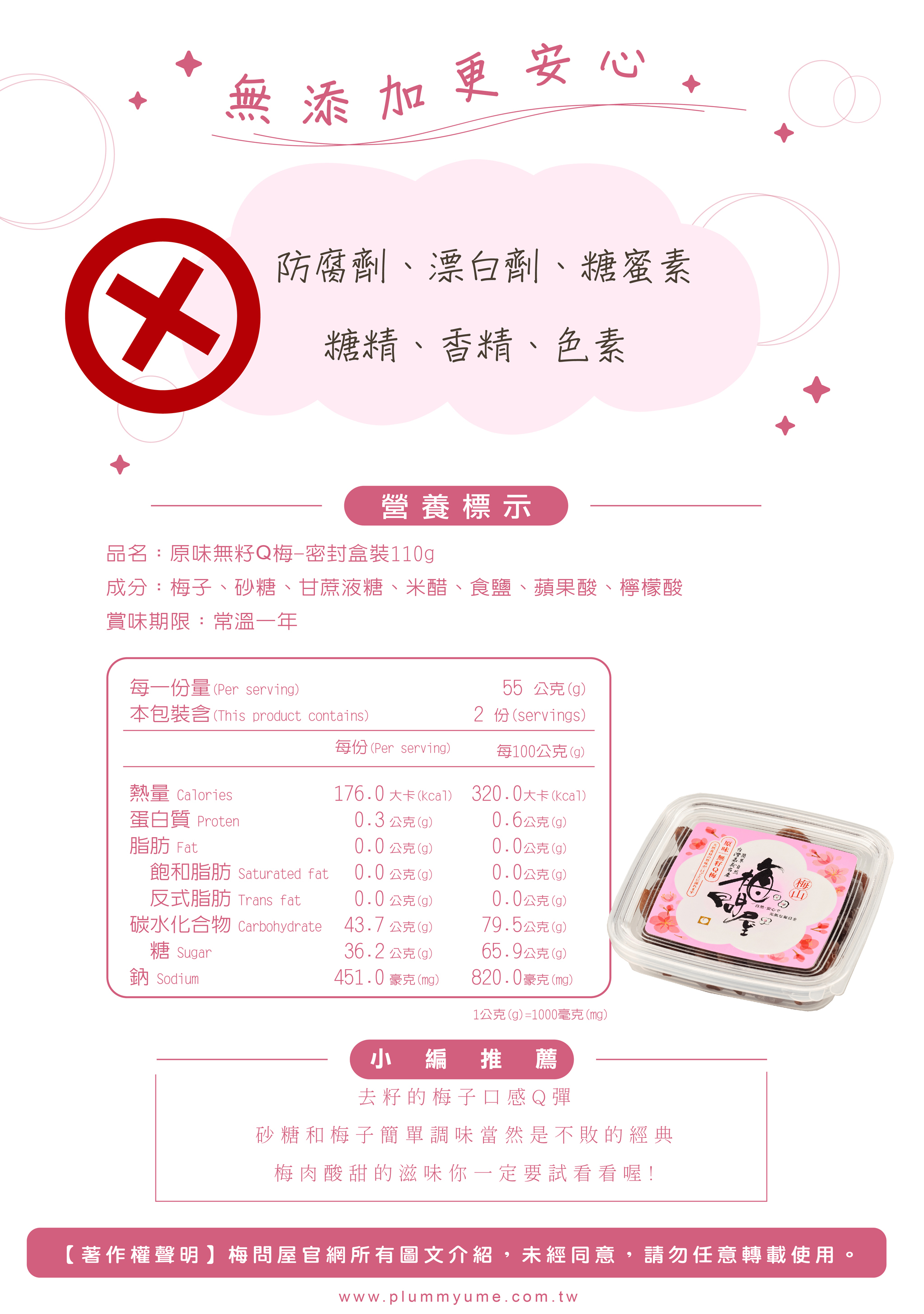 成分:梅子、砂糖、米醋、蘋果酸、檸檬酸、食鹽、甘蔗液糖