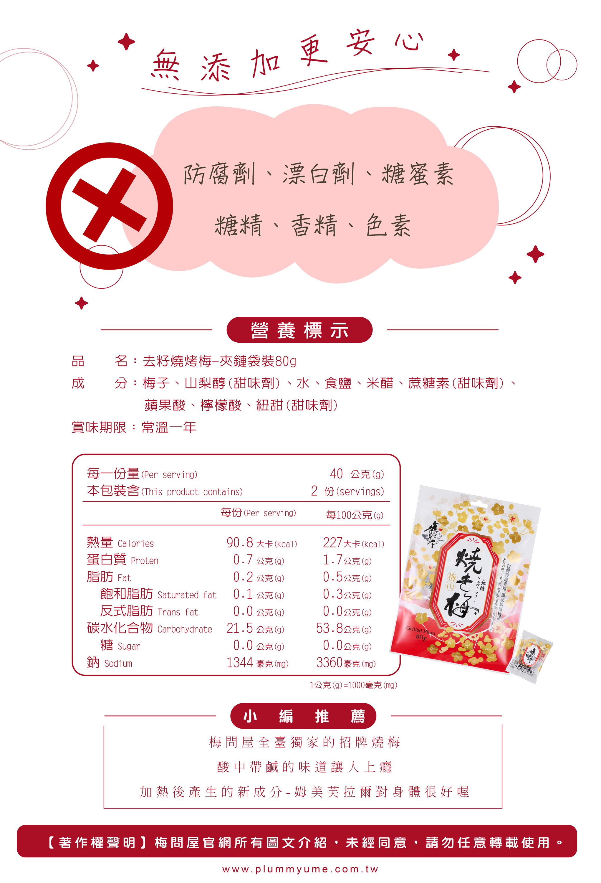 品名:去籽燒烤梅-夾鏈袋裝80g
