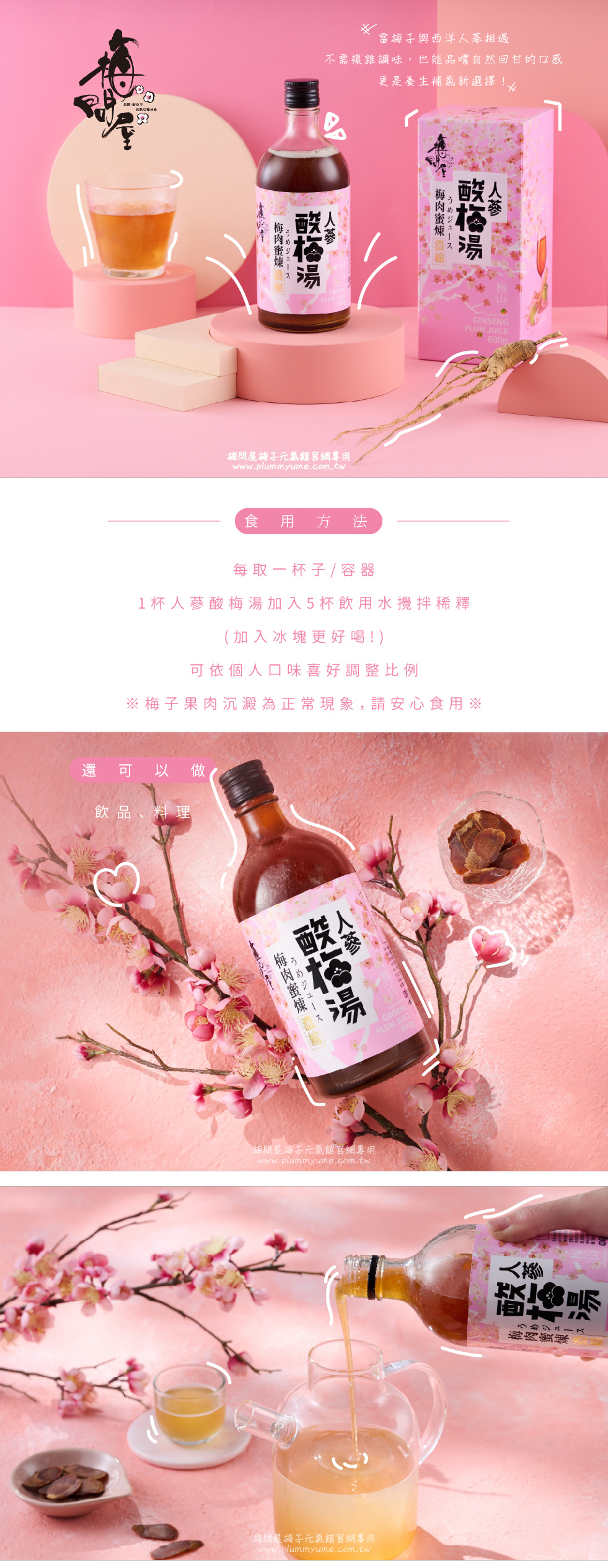 成分:砂糖、水、梅子醬、西洋蔘萃取粉、蘋果酸、蜂蜜、蔗糖素(甜味劑)