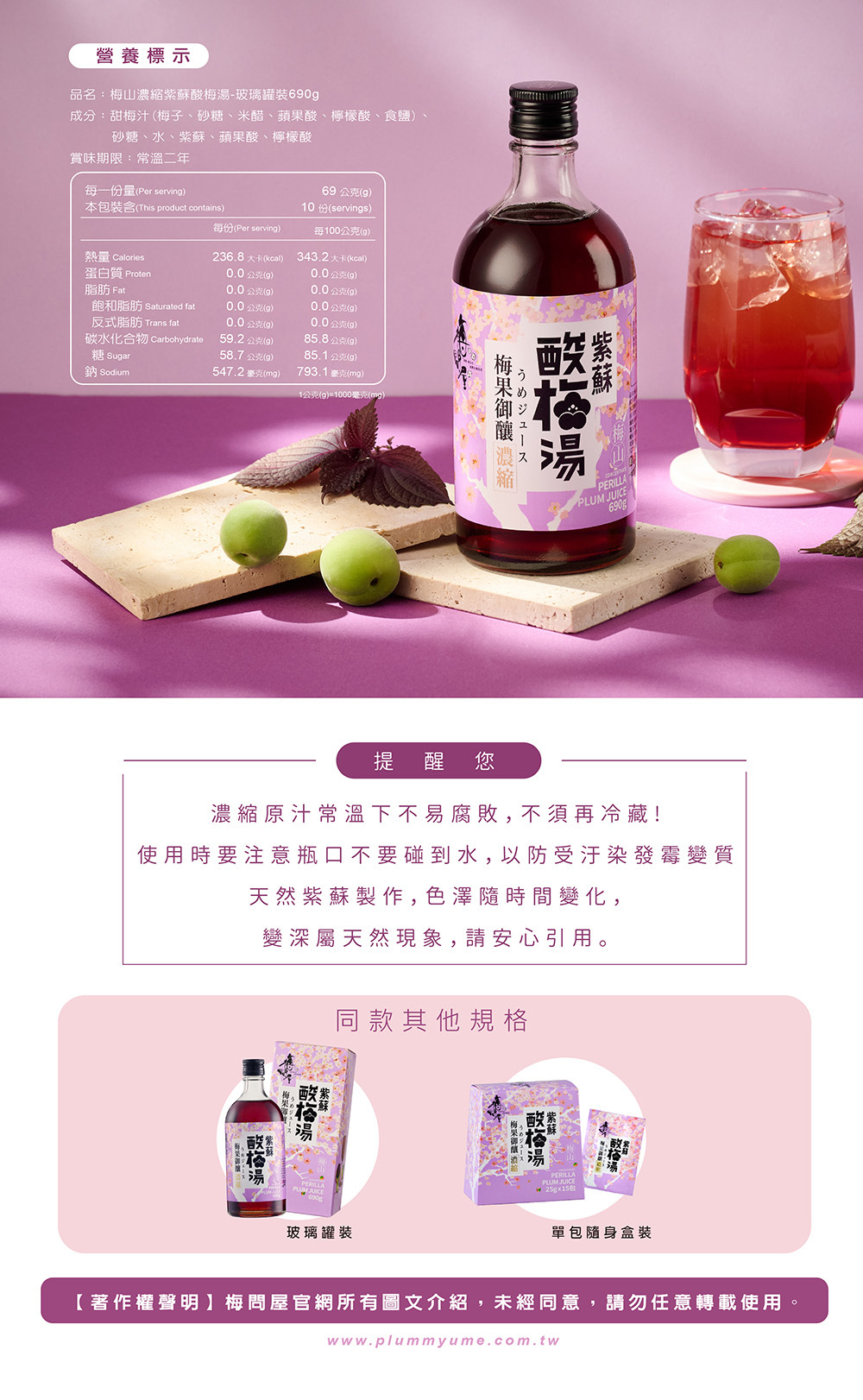 品名:梅山濃縮紫蘇酸梅湯-玻璃罐裝690g