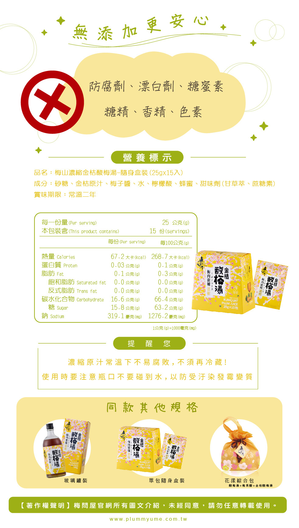 品名:梅山濃縮金桔酸梅湯-隨身盒裝(25gx15入)