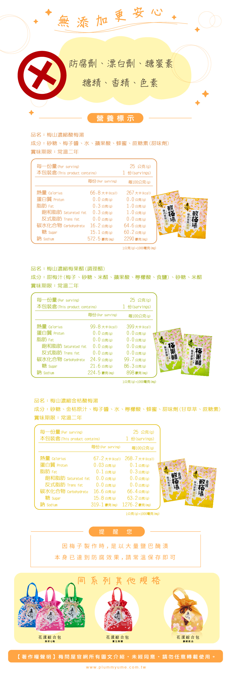 成分:砂糖、梅子醬、水、蘋果酸、蜂蜜、蔗糖素(甜味劑)