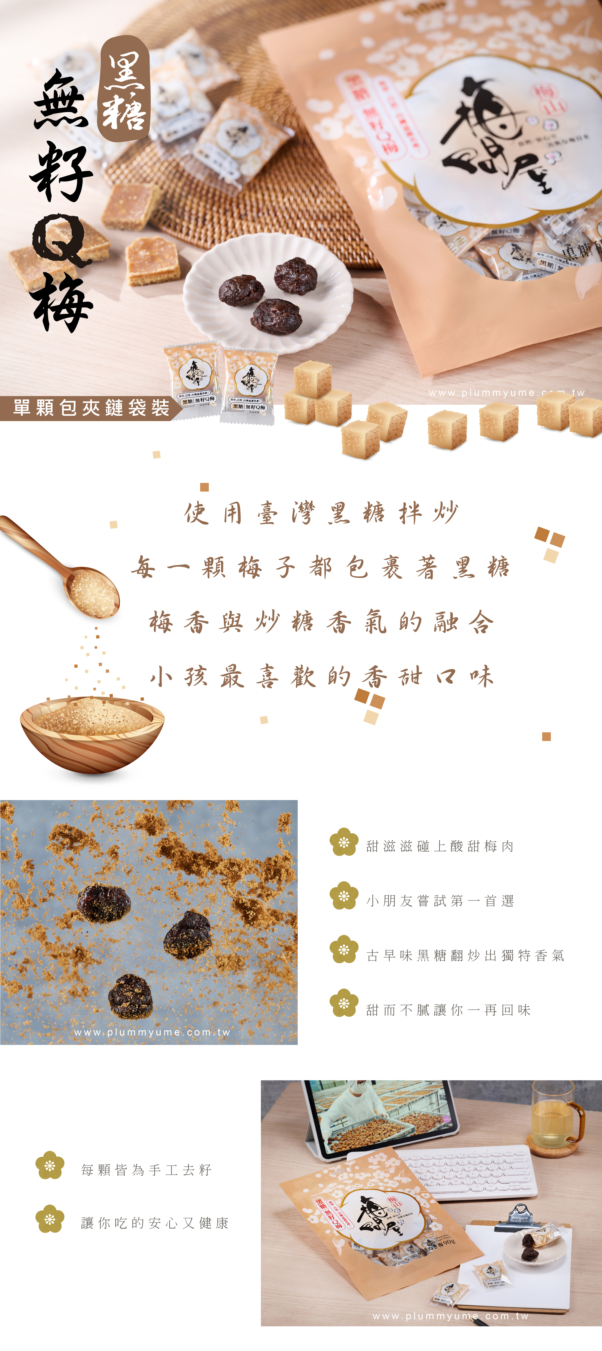 品名:黑糖無籽Q梅-夾鏈袋裝90g成分:梅子、黑糖、砂糖、水、食鹽、米醋、蘋果酸、檸檬酸